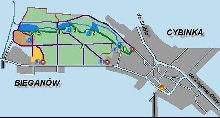 Wejścia na trasę przyrodniczą znajdują się w Bieganowie i Cybince. W miejscach tych ustawione są tablice z planem sytuacyjnym ścieżki. Obrazuje to poniższa mapka (w celu powiększenia, należy kliknąć):