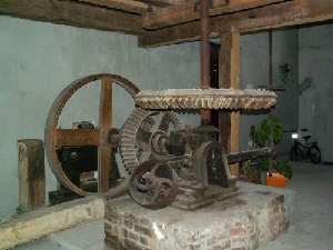 Wewnątrz budynku znajdują się unikatowe urządzenia młyńskie m. in.: drewniany system napędowy oraz kamienne żarna.