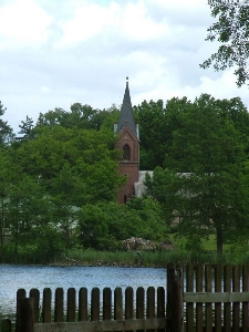 Architektonicznym dopełnieniem kompozycji parku jest kościół z XVII wieku, położony na północnym krańcu jeziora, o konstrukcji ryglowej, z XIX-wieczną, murowaną wieżą. Budynek sakralny jest zbudowany w formie prostokątnej bryły