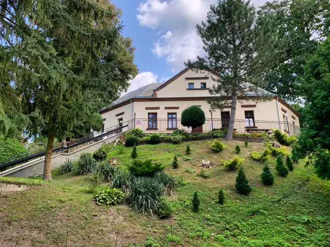 W XIII w. znajdował się tu, na przesmyku między jeziorami Tarnowskim Małym a Tarnowskim Wielkim, gród kasztelański należący do książąt głogowskich. Usytuowany on był na sztucznie uformowanym i otoczonym fosą, 12- metrowym wzgórzu. Gród, wzmiankowany w 1295 r., w XIV w. zastąpił zamek książęcy. Już w 1381 r. był on mocno zniszczony. W 1624 r. Jan Schönaich, zwany Nieszczęśliwym, zbudował na wzgórzu dawnego zamku pałacyk myśliwski. Pierwotnie był on rezydencją Schönaichów, zamieszkiwaną w czasie polowań. W okresie międzywojennym należał do grafa Haugwitzß-Namiest i był użytkowany przez niemieckie organizacje młodzieżowe, służył jako schronisko. Obecnie, opuszczony i zdewastowany, czeka na zagospodarowanie. Pałacyk, założony na planie ośmioboku nieregularnego, zajmuje prawie całą powierzchnię pagórka. Dojście od zachodu po stopniach stanowi jedyny do niego dostęp. Fosa, otaczająca porosłe drzewami wzgórze, jest obecnie sucha. Pałacyk jest budynkiem jednokondygnacyjnym, pośrodku mieści prostokątny dziedziniec, jego dach kryty jest trzciną.