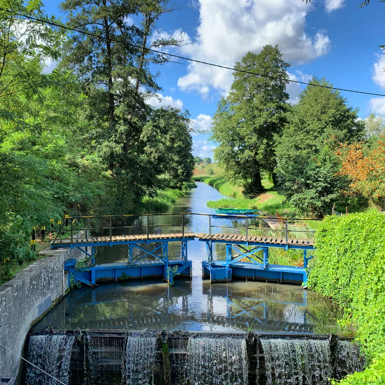 Po prawej stronie mijamy widoczną zaporę. Przepływamy pod kładką i przed nami jawi się już jez. Paklicko Wielkie.