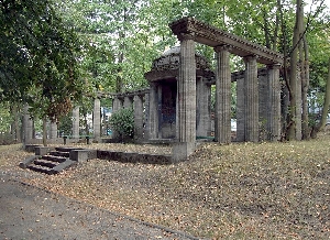 | Pozostałości Grobowca Georga Beuchelta, fot. Mohylek, http://pl.wikipedia.org/wiki/Park_Tysi%C4%85clecia_(Zielona_G%C3%B3ra) |