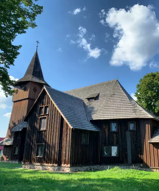 Powstanie budowli datuje się na wiek XVI. Jako siedziba parafii katolickiej obiekt ten funkcjonował przez blisko trzy stulecia. Po reformacji w 1576 roku drewniany kościółek przejęli ewangelicy. Rozpoczęto wówczas szereg prac renowacyjnych. Zwolennicy Marcina Lutra chcieli stworzyć przepiękną kaplicę. Nie da się ukryć, że udało im się to wyśmienicie.