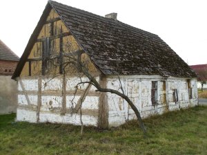 - Zabudowa folwarczna składająca się z dwóch budynków mieszkalnych, jakie zachowały się z dawnego zespołu dworskiego. Jeden parterowy z dwuspadowym dachem, wybudowany w pierwszej połowie XIX wieku. Drugi postawiony w trzeciej ćwierci XIX stulecia. Cechą charakterystyczną jest wysokie podpiwniczenie i piętrowy ryzalit zwieńczony trójkątnym przyczółkiem.