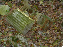 W parku znajdował się wielki rodzinny grobowiec Gesdorffów z doryckim portykiem z XIX w., który został wysadzony w powietrze przez wojsko pod koniec lat 60-tych. Do dzisiaj między drzewami leżą fragmenty strzaskanych kolumn. Ocalała jedynie figura Chrystusa stojąca obecnie przed kościołem. Jako przyczynę wysadzenia grobowca podawano „groźbę zawalenia i urządzanie tu libacji przez miejscowych chuliganów” – cytuję z pamięci wypowiedź milicjanta.