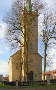 We wsi kościół pw. Św. Piotra i Pawła, wzniesiony w 1847 roku, murowany, otynkowany, wzniesiony na rzucie prostokąta, z półkolistą apsydą od strony wschodniej. W związku z istnieniem empor okna zostały rozmieszczone w dwóch kondygnacjach. Nad całością dominuje wysoka, prostokątna wieża, zwieńczona w narożach sterczynami w kształcie małych wieżyczek, nakryta strzelistym hełmem o charakterze iglicy, zwieńczonym kulą i krzyżem. W pobliżu kościoła znajduje się zespół dworski z pierwszej połowy XIX wieku, obejmujący budynki folwarczne (klasycystyczny granitowy spichlerz, szachulcowa stodoła) oraz park krajobrazowy z końca XVIII wieku o powierzchni ok. 4 ha. W parku pomnikowy dąb o obwowie przekraczającym 6 m.