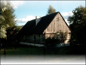 -Dom z końca XVIII stulecia, drewniany o konstrukcji zrębowo-węgłowej.